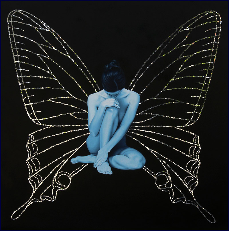 PSICHE , l’ANIMA , e’ in una posizione di raccoglimento , di introspezione , di “RIFLESSIONE” , termine che , attraverso un gioco di parole , rimanda alla “riflessione” dello specchiarsi nelle tessere di specchio applicate all’opera.